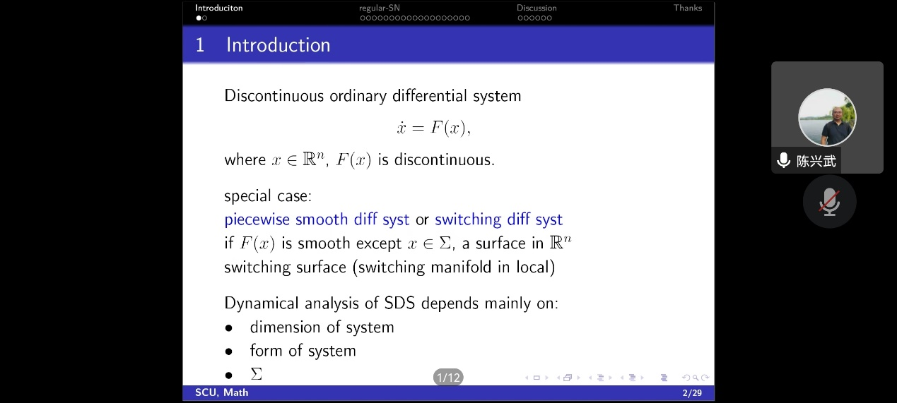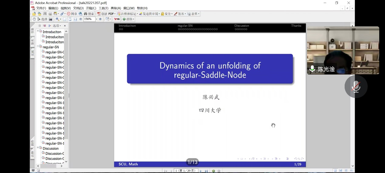 做了“Global dynamics of an unfolding of regular-saddle-node”的报告。