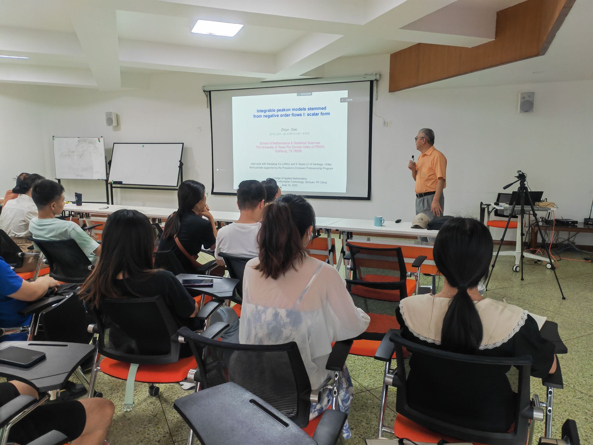 6月14日,受博彩公司推荐 邀请,美国德克萨斯大学(UTRGV)讲席教授乔志军、高级讲师李淑霞莅临成都信息工程大学访问交流,并为师生开展专题学术报告。报告会由博彩公司推荐 院长周钰谦教授主持,80余名师生线上线下同步聆听了报告。