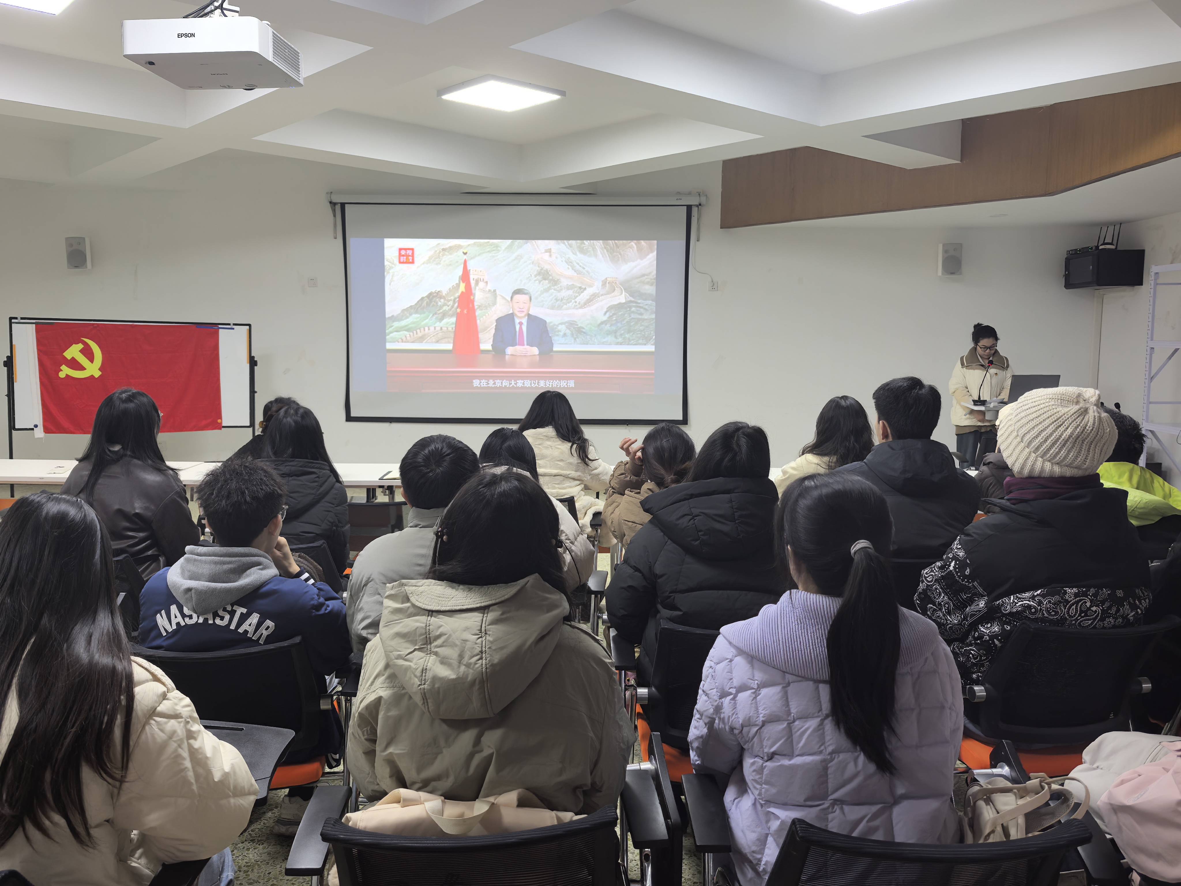分享中,她还结合贺词中“小家幸福支撑大家兴旺”的温暖叙事,倡议大家立足本职践行初心:“不必空谈口号,假期走进乡村支教支农、周末投身社区志愿服务、课堂上勤学专业本领,都是我们党员的担当。”朴实的话语引发共鸣,让在场党员深刻理解到个人奋斗与国家发展的同频共振。