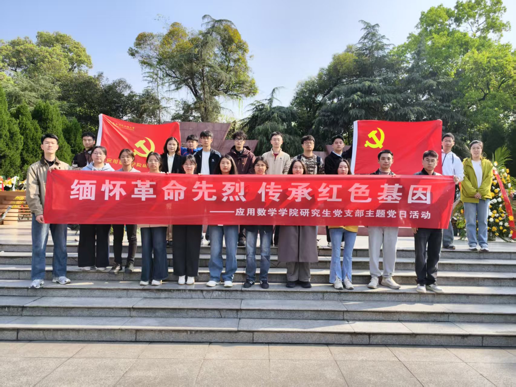 研究生党支部组织党员同志与入党积极分子,前往十二桥烈士墓开展“缅怀革命先烈 传承红色基因”清明祭英烈主题党日活动,缅怀先烈、致敬英魂。