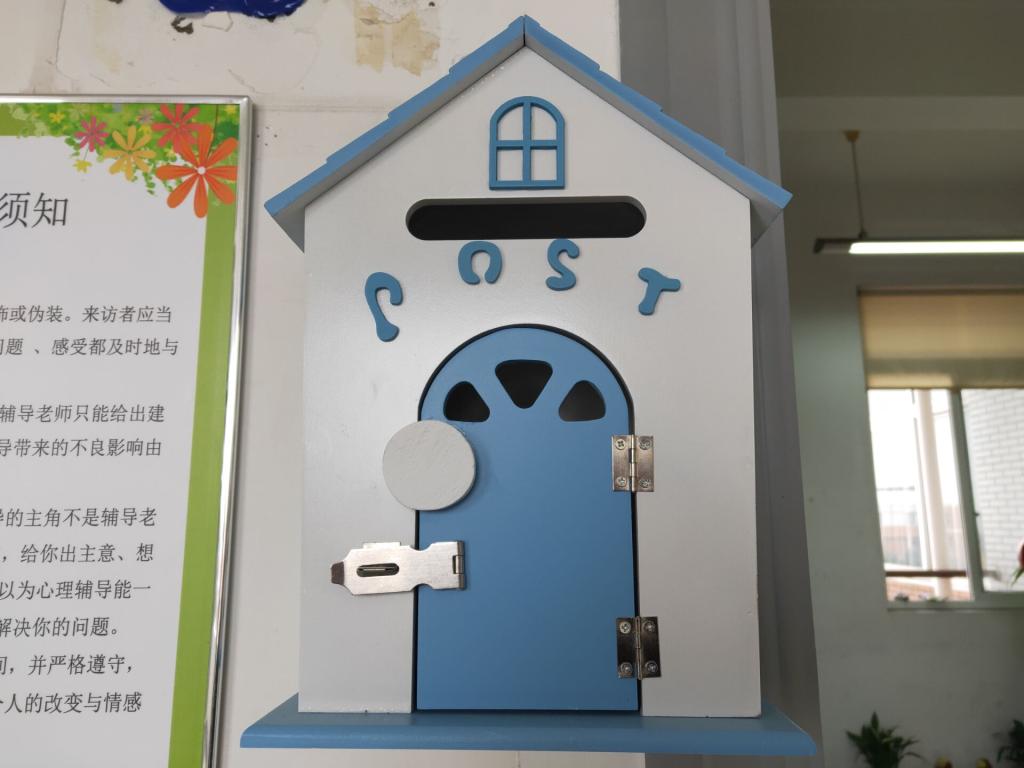 工作室门口悬挂大学生心理健康标准以及来访者须知,提示来访者自我检视,同时设立心灵信箱,为有倾诉需求但不想当面沟通的同学提供交流的渠道。
