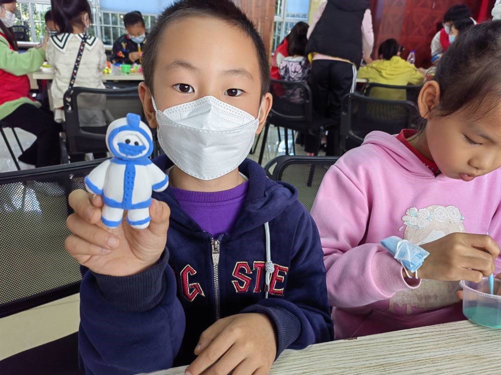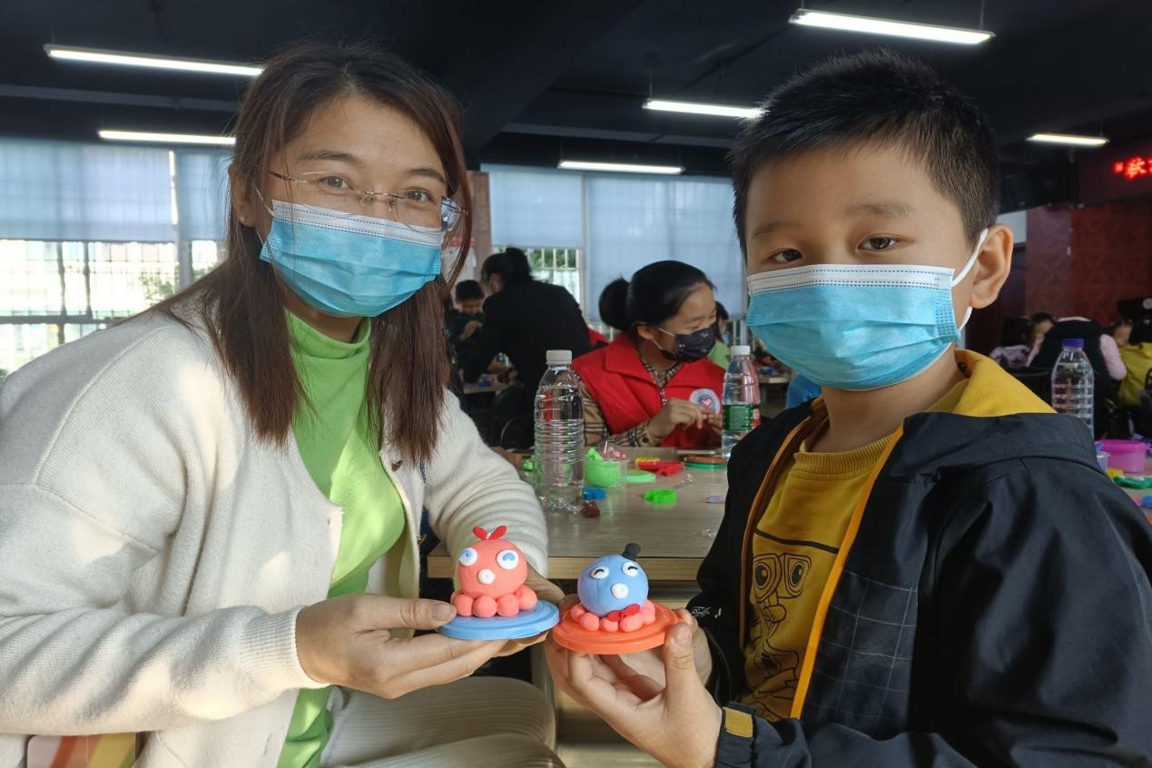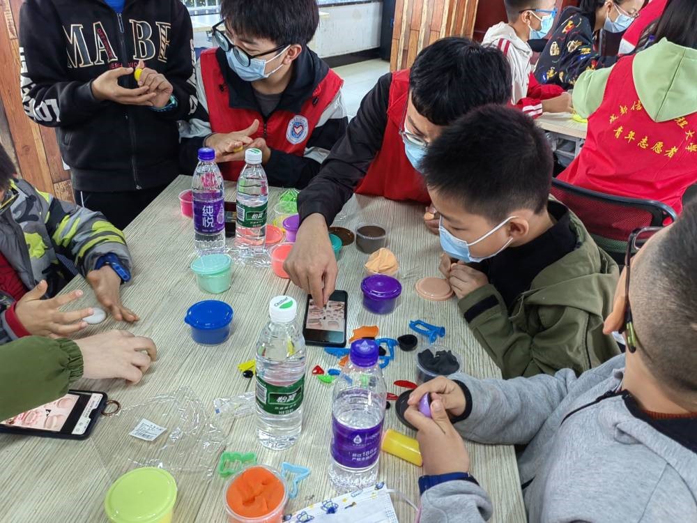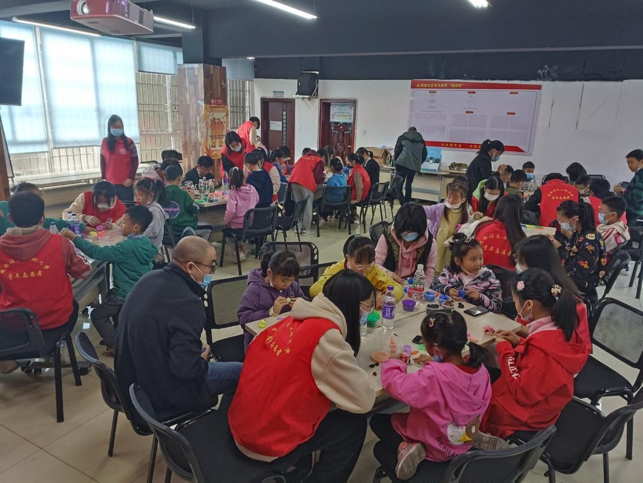 到了做手工环节,小朋友们更是投入其中,捏黏土,折折纸,学剪纸,做贺卡,在志愿者们的帮助下,小朋友们顺利完成了各种各样的作品。