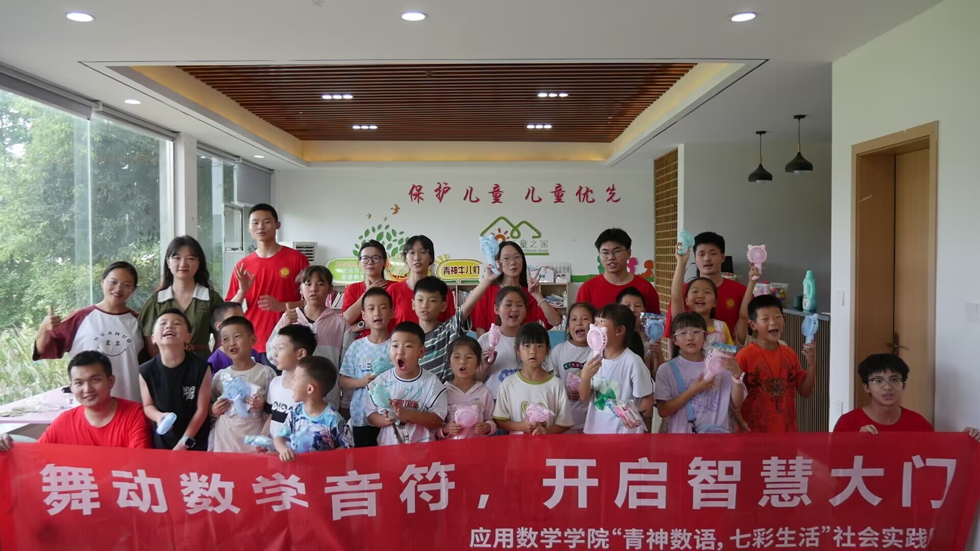 与此同时,同学们与当地小朋友建立起深厚的友谊,并为他们组织策划了儿童读书会和趣味数学活动,活动吸引了众多小朋友及家长参与,现场气氛热烈温馨。同学们通过讲述屈原、牛顿、华罗庚等多位人物故事,激发小朋友们对历史的兴趣;同时巧妙将数学原理和趣味游戏融合,设计多个互动环节,让小朋友们在轻松愉快的氛围中感受数学的魅力与乐趣,培养他们对科学的热爱与探索精神。