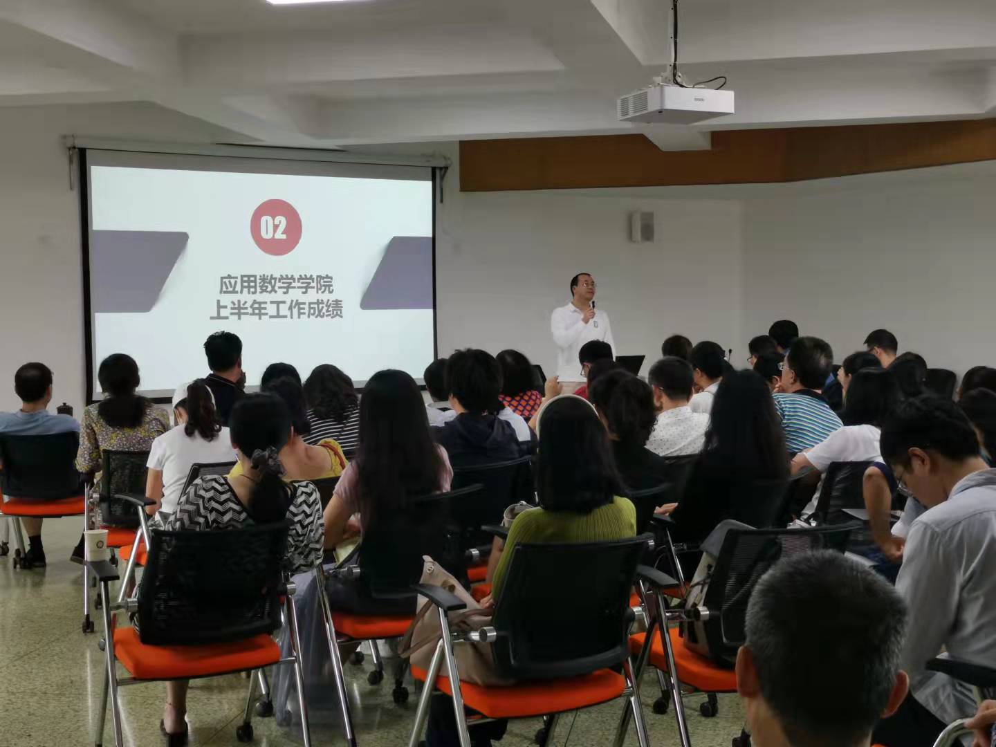 学院院长周钰谦做了总结发言。周钰谦介绍了学院上半年工作成绩,信息与计算科学申报成为一流专业建设点,这是学科建设的标杆性里程碑;学院教师注重教学研究,申报的7个教学成果奖全部获奖;成都信息工程大学应用数学中心的成立,为科研工作开启了新起点。而后,周钰谦对学院下半年工作做了部署和安排,为新学期各项工作的开展指明了方向和路径。希望各位老师能够统一思想、振奋精神、扎实工作,切实推进学院各项建设迈上新台阶!