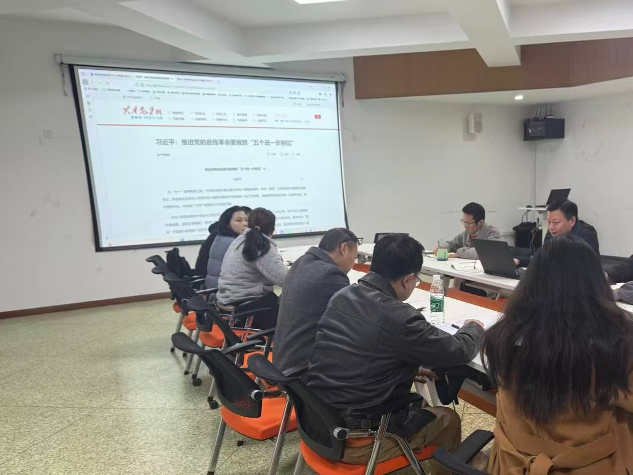 会议首先聚焦核心理论学习,组织全体参会人员深入学习《求是》杂志发表的习近平总书记重要文章《推进党的自我革命要做到“五个进一步到位”》。通过原文研读、集中研讨的方式,参会人员深刻领会文章的核心要义与实践要求,一致认为推进党的自我革命是新时代全面从严治党的重要举措,是跳出历史周期率的关键指引,“五个进一步到位”为基层党建工作提供了根本遵循。大家纷纷表示,要将自我革命精神融入学院党建全过程,切实把学习成果转化为锤炼党性、履职尽责的实际行动,不断提升基层党组织的凝聚力和战斗力。