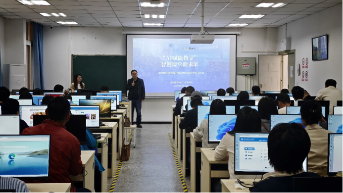 联合智慧树网,在H6202教室成功举办“AI赋能教学”智创课堂新未来——教师数字素养提升培训暨AI教学中心工作坊。本次活动旨在贯彻落实教育部及四川省关于教育数字化、人工智能赋能教育的系列文件精神,积极响应学校“AI+教育”融合创新的号召,八十余名学院教师齐聚一堂,共同探索智能技术与数学教育教学融合的新路径。活动由学院副院长胡建成主持。