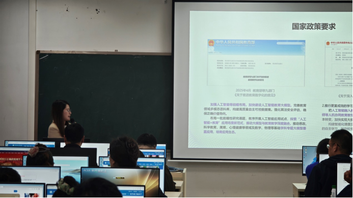 培训首环节,智慧树网金课咨询师徐乐作“智慧慕课建设”专题政策解读。她系统梳理了从国家到地方推动教育数字化、智能化转型的最新政策导向,并结合全国高校数学类课程建设的优秀实践案例,深入剖析了AI技术在增强慕课教学互动性、设计高阶性学习任务、实现全过程学业评价等方面的关键作用。解读为学院教师厘清了政策脉络,更为学院规划与申报AI赋能示范课程、打造具有数学学科特色的智慧慕课指明了清晰的实施路径,从顶层设计上筑牢了“AI+数学”教学改革的基石。